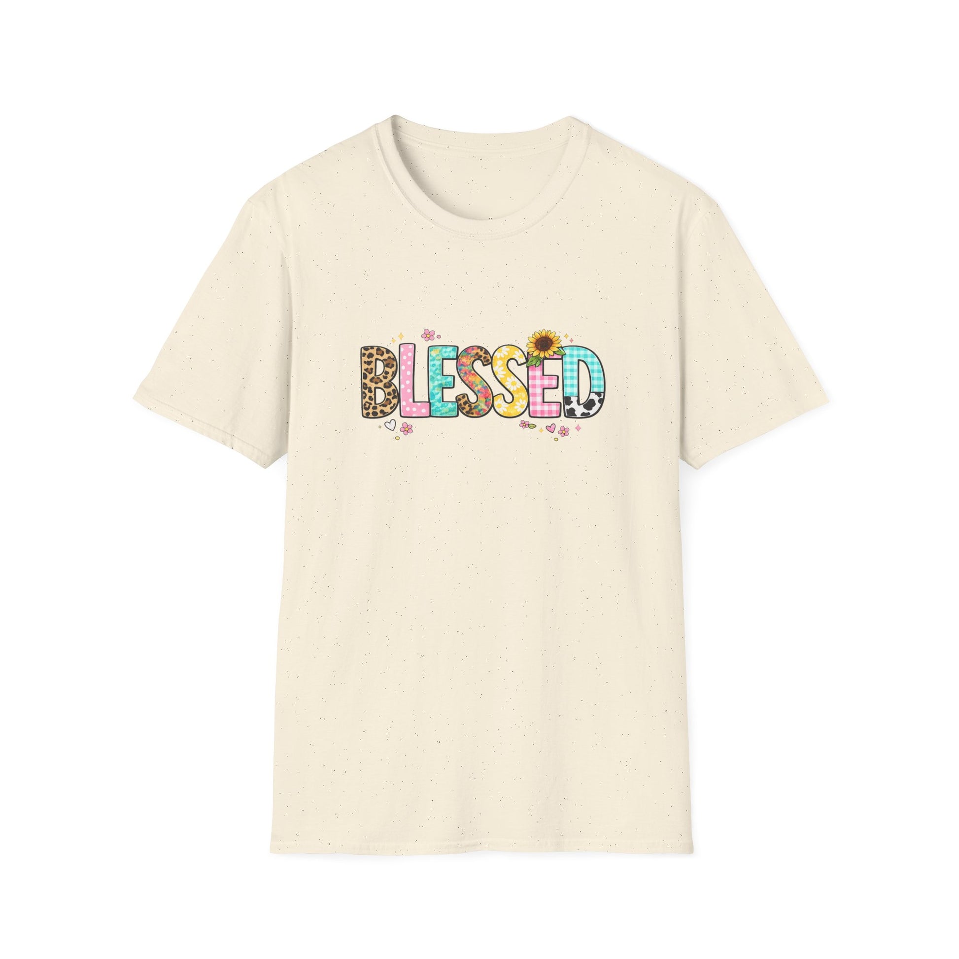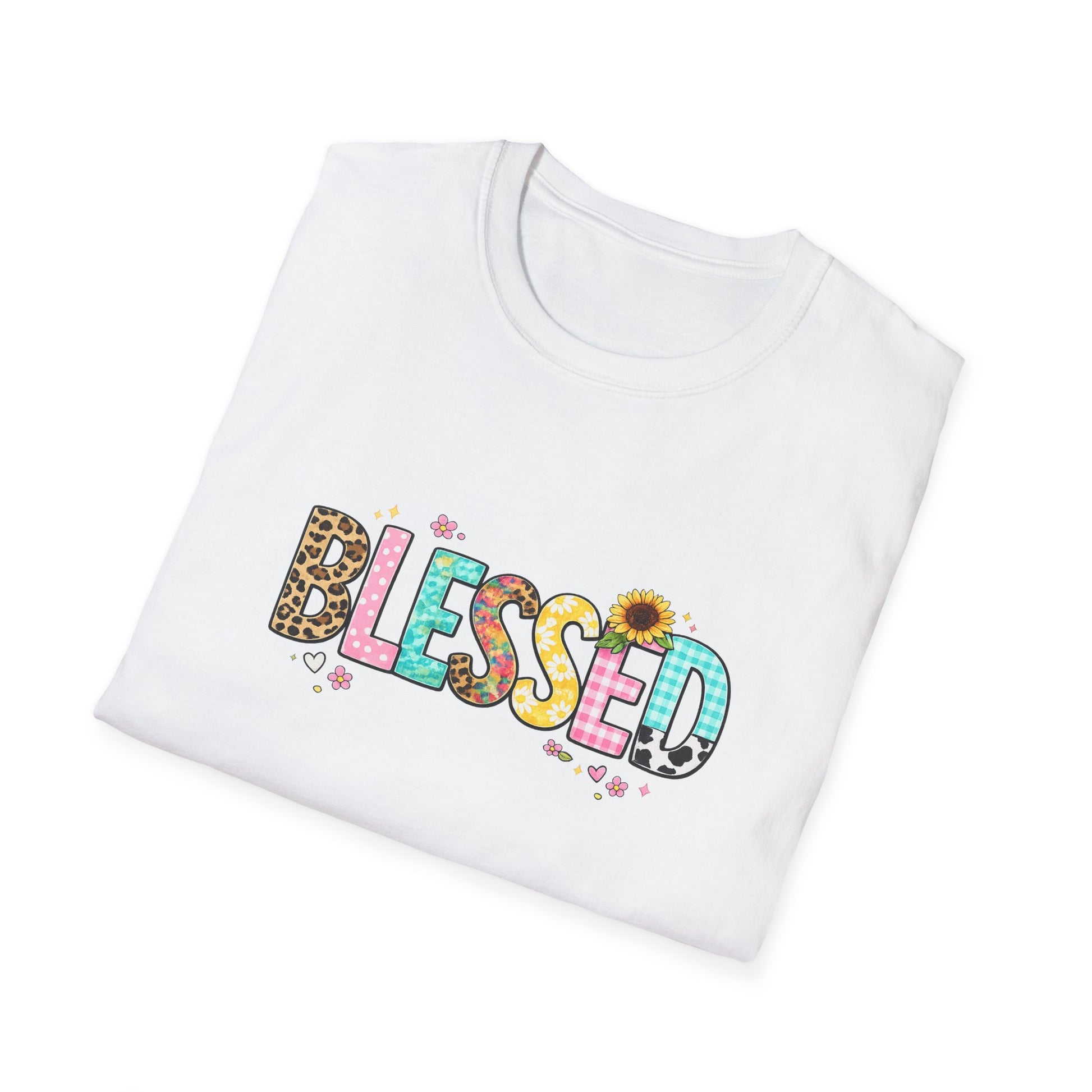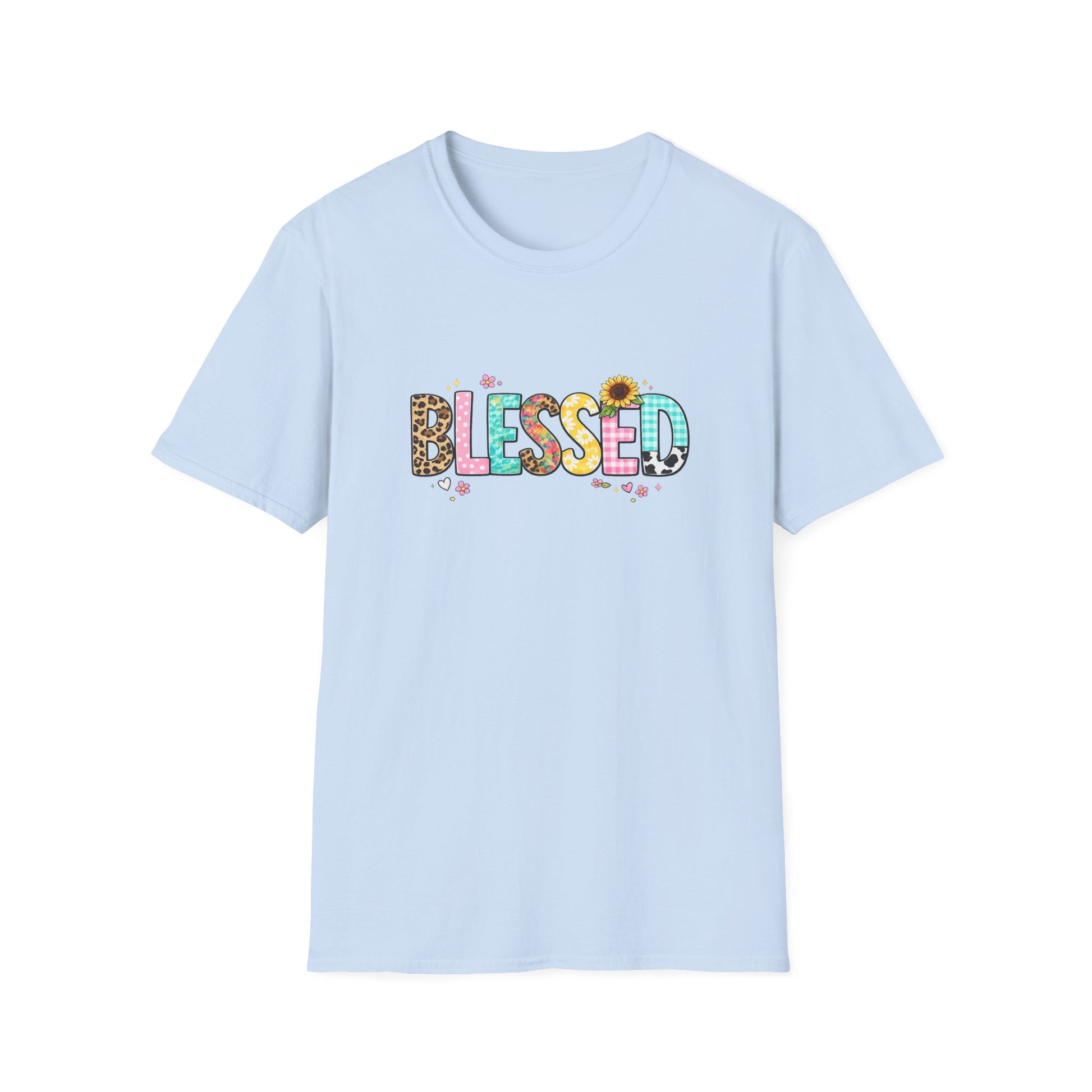 A lightweight, comfortable tee that wears like a gentle hug — soft ring-spun cotton with a clean crew neckline and single-piece knit for a smooth silhouette. The front art reads “BLESSED” in playful, mixed-pattern lettering: a sunny sunflower, pastel florals, and subtle animal print give it a warm, upbeat vibe. It layers easily under jackets or stands out on its own, bringing a bright, grateful energy to everyday life. Thoughtfully finished with a ribbed collar, shoulder tape for shape retention, and a pearlized tear-away label for itch-free comfort. Ethically sourced cotton and Oeko-Tex certified fabric mean you can feel good about wearing it as you celebrate simple moments and slow mornings.