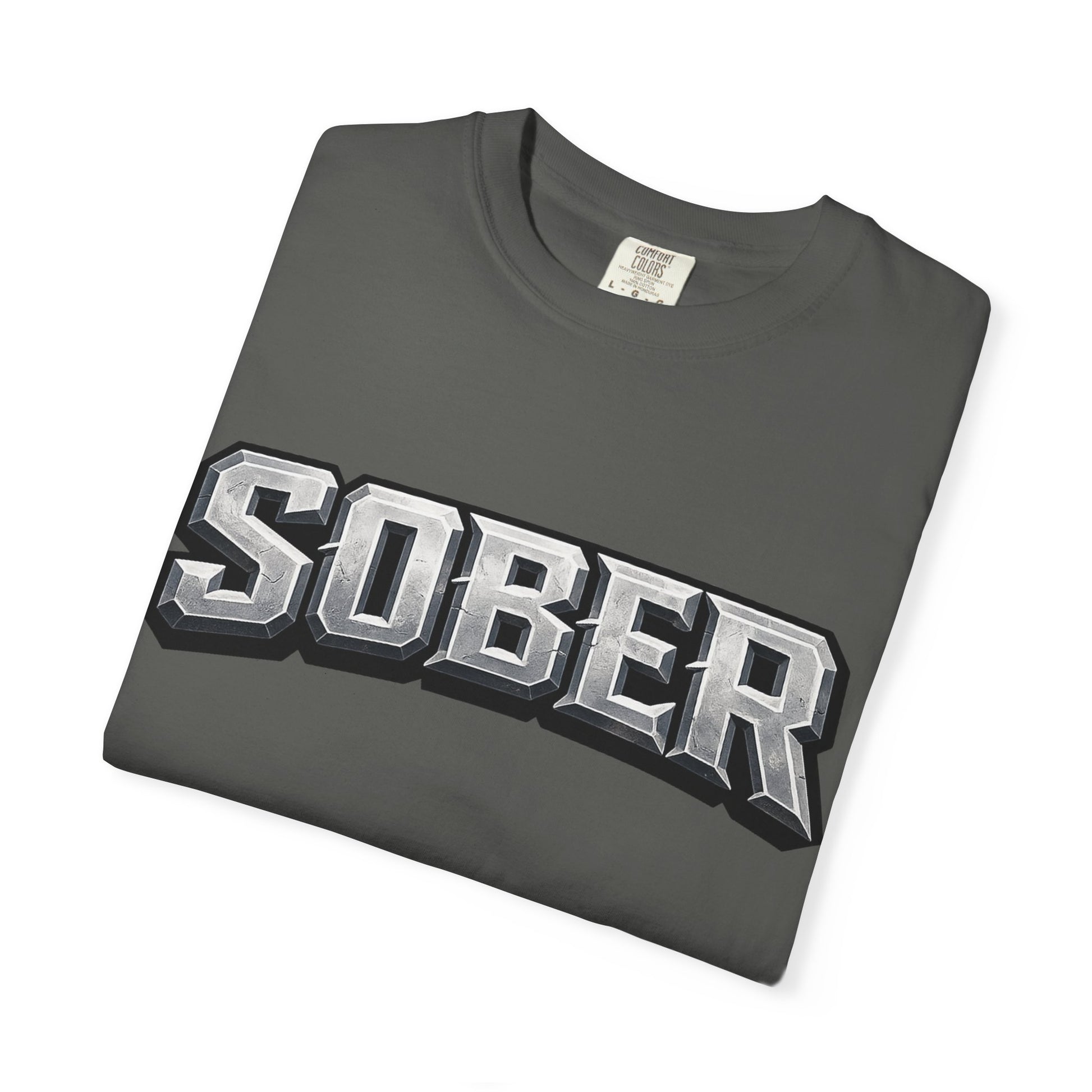 A heavyweight, garment-dyed tee built for everyday wear and quiet confidence. The relaxed silhouette and soft, washed-in color come together with a bold, vintage-inspired "SOBER" chest graphic that reads like a badge of personal victory. Wear it to meetings, recovery meetings, long walks, or simply when you want an honest statement without shouting. The dense 6.1 oz cotton feels substantial yet broken-in thanks to the post-construction dyeing, and neat double-needle stitching keeps the shirt durable through repeat wears and washes. It’s a straightforward piece that settles into your rotation — comfortable, solid, and clear about what matters.